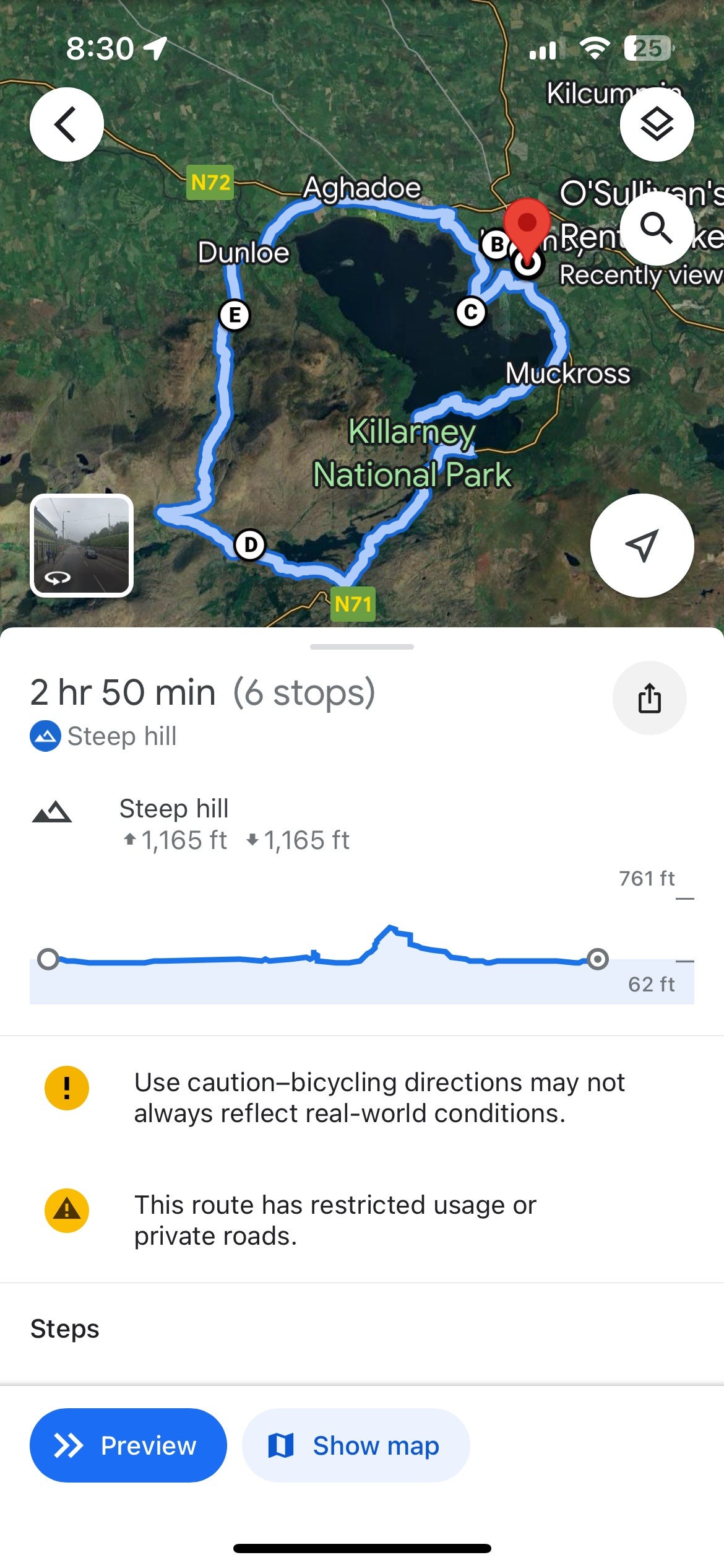 Our 1st official tour was a bike and boat tour of Killarney National Park, which was a 45 minute drive from Derrymore. We picked up our e-bikes (more on this option later) from O’Sullivans Bike Rentals in Killarney and rode through Killarney House and Gardens to Ross Castle.